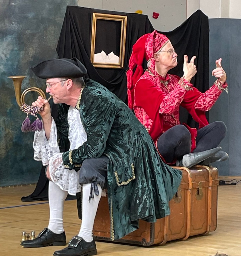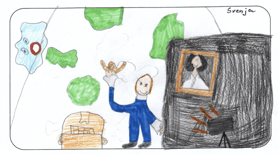 „Ich fand es witzig, dass in einem Bilderrahmen immer ein Kopf aufgetaucht ist und dass das Alphorn über den Vorhang, wie eine Giraffe drüber geschaut hat.“ (Jan)
